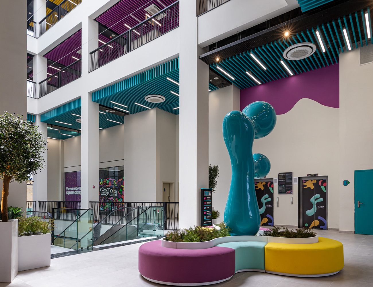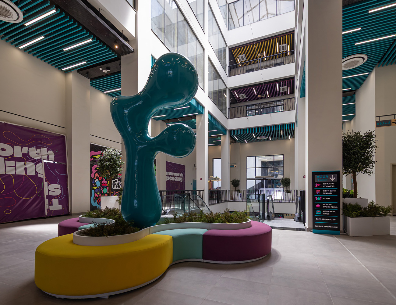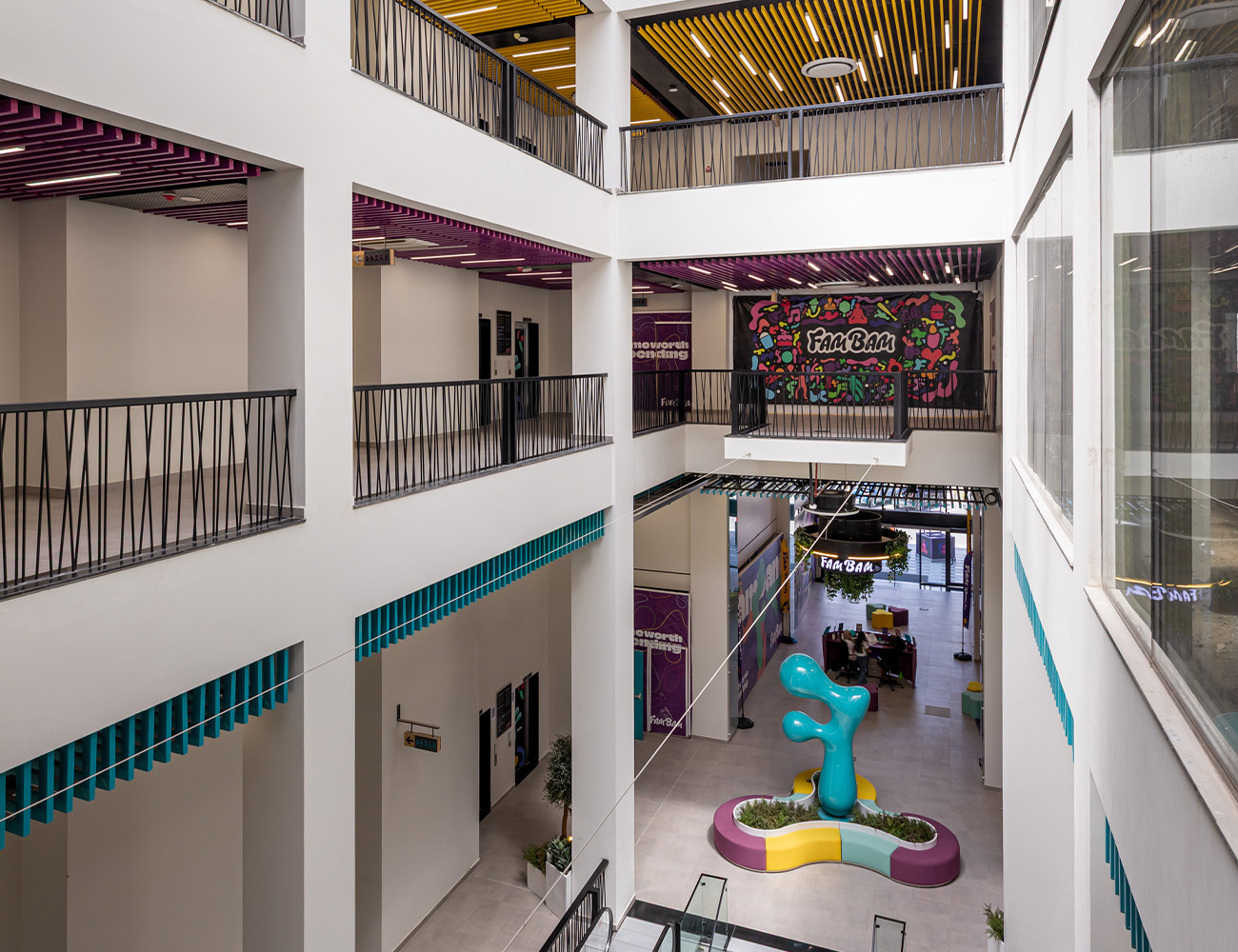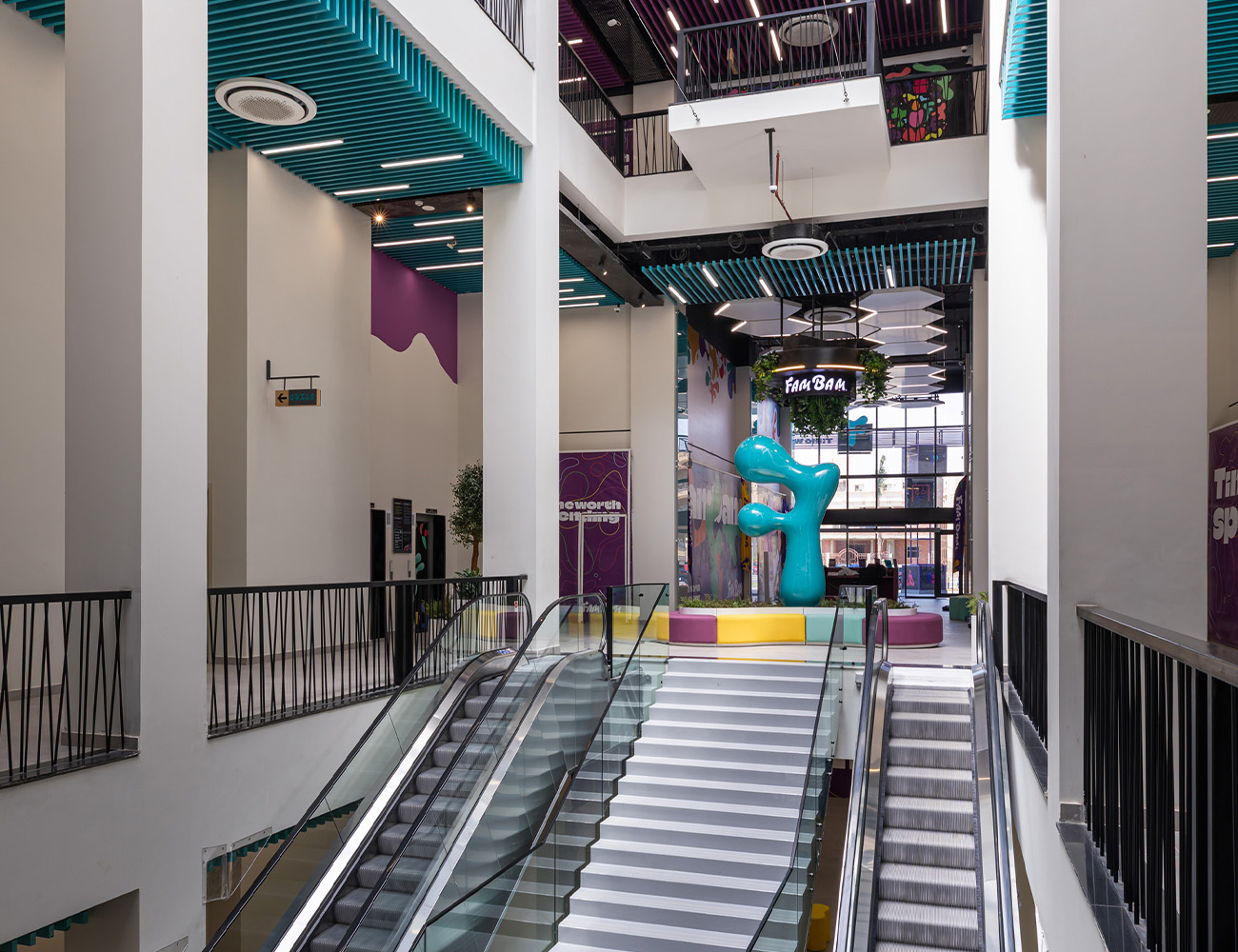 The Fam Bam Mall project in the Fifth Settlement is designed to be an expansive entertainment center spanning an area of 25,200 sqm. With 6 levels, each floor covering approximately 4,200 sqm, the mall offers a diverse range of facilities. The basement includes a car garage, while the other 4 floors house shops, entertainment areas for kids, seating areas, restaurants, bathrooms, and service areas. The roof floor level completes the .offering -We adhere to strict construction standards, employ experienced professionals, and use topier materials to create a safe, functional, and aesthetically pleasing space. From the tstructural design to interior layout, every detail is closely monitored to ensure it aligns with .our vision of providing a premium entertainment experience for families.