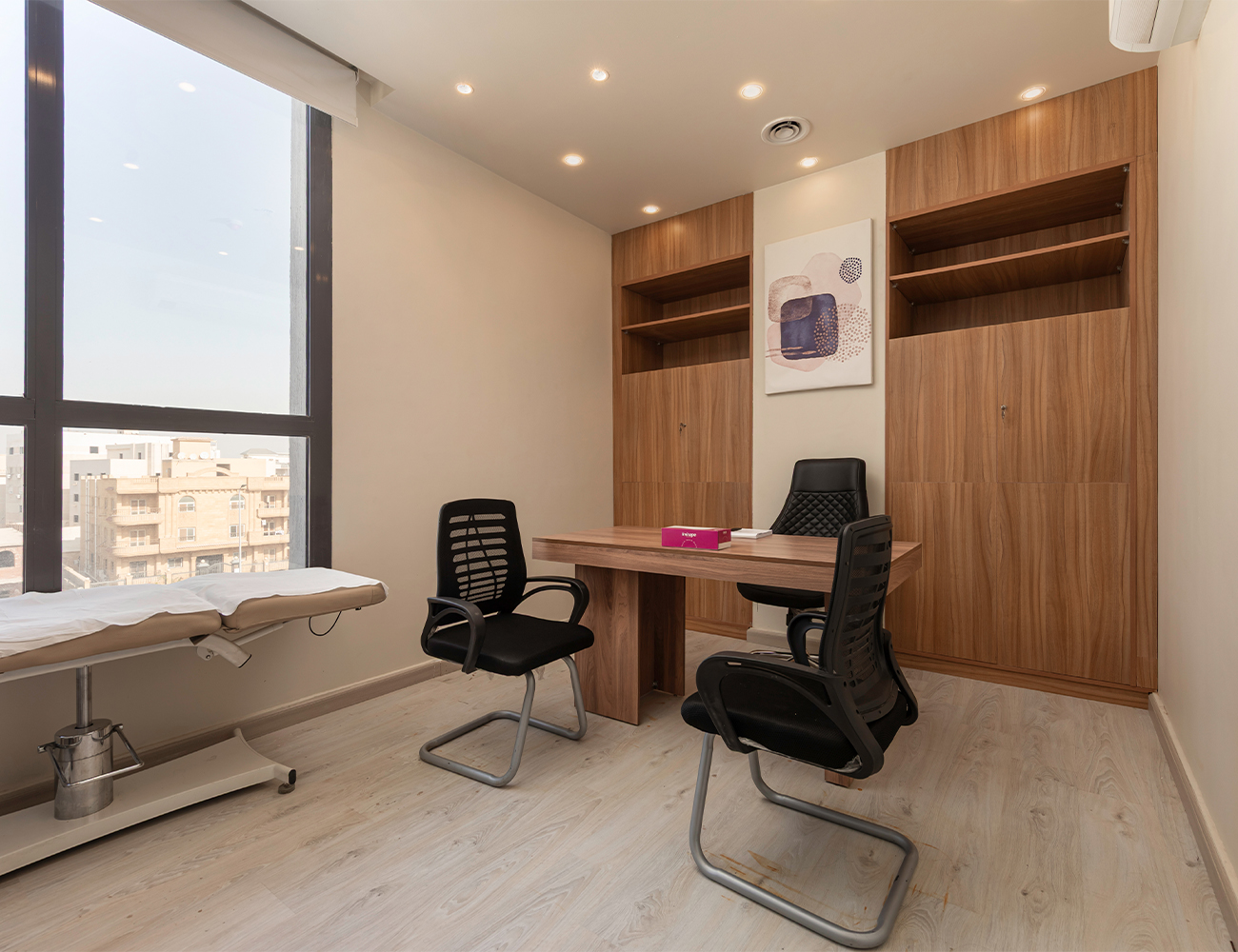 completed within a fast-track schedule of just 30 days. The scope included full demolition of existing finishes, followed by redesign and execution of the reception area and physiotherapy rooms, delivering a modern contemporary design that reflects the identity of the space.